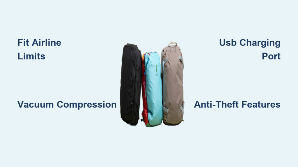 Real-World Test: This rucksack accommodated 7 days of clothing plus a 17″ laptop for a cross-country business trip while staying within American Airlines’ 22x14x9″ requirements. The USB charging port (with your own power bank) kept devices powered during layovers.
