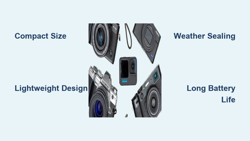 Most travelers waste money on cameras that end up gathering dust because they prioritize specs over usability. They hear “24MP sensor” or “4K video” and assume bigger is better, ignoring critical factors like weight distribution during 10-hour city walks or low-light performance in dimly lit temples. The truth? The best travel camera isn’t defined by megapixels—it’s the one you’ll actually carry and use daily. Forget generic “top 5” lists that ignore your unique travel style. Whether you’re hiking Patagonia with a backpack or strolling Parisian cafes, your ideal camera solves your specific problems: Will it fit in your crossbody bag? Can you operate it with gloves in freezing conditions? Does it survive accidental rain exposure? This guide transforms overwhelming technical jargon into actionable checkpoints so you stop researching and start capturing memories.