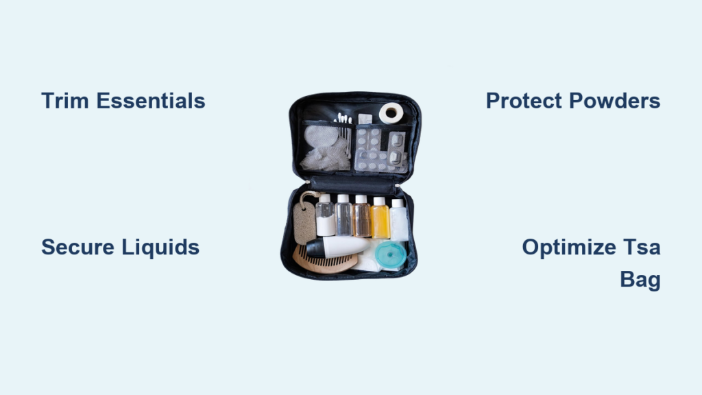 Place your liquid bag in an outer suitcase pocket for instant removal—no frantic unzipping mid-line. Keep makeup wipes accessible to clean hands after touching security bins (studies show they harbor more bacteria than toilet seats). Swap metal-packaged products like NARS blush compacts for plastic alternatives to avoid extra screening. Pro move: Pack solid perfume instead of liquid—no restrictions, and it lasts longer.