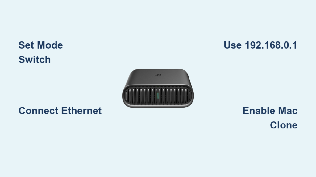 Router mode converts a single hotel Ethernet jack into private Wi-Fi for all devices—perfect when walls have wired ports but no Wi-Fi. Hotspot mode is your airport savior: it captures portal-based networks (like “Hilton_Guest”) and rebroadcasts them as your secure network after login. USB Internet mode shares your phone’s data or 3G/4G modem wirelessly—crucial when cellular is your only option. Access Point mode adds Wi-Fi to dorm Ethernet jacks. Range Extender mode eliminates dead zones in RVs or cabins. Client mode gives Ethernet-only devices (smart TVs, gaming consoles) wireless access.